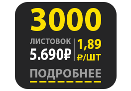 Заказ - 3000 штук / односторонняя / черно-белая / бумага офисная - 80гр.